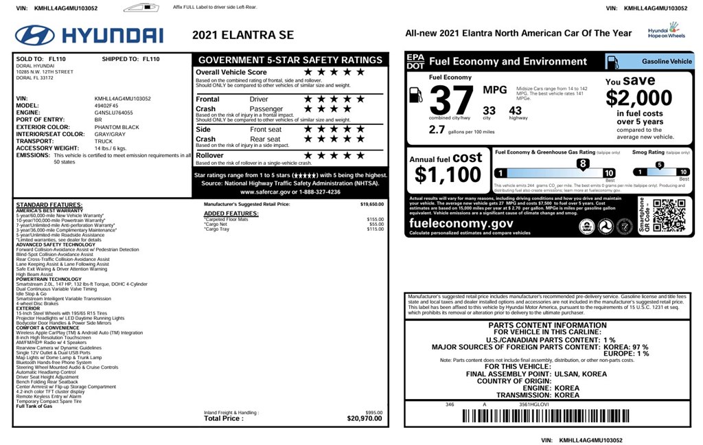 2021 HYUNDAI ELANTRA SE